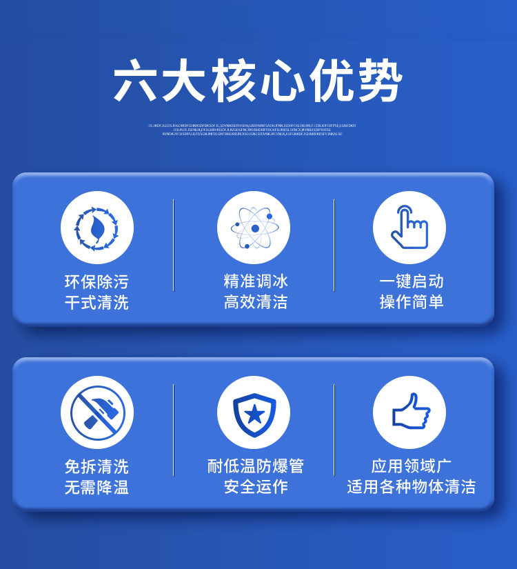 干冰清洗的優(yōu)勢(shì)在于其高效的清洗速度,與傳統(tǒng)清洗方法相比較,干冰清洗的速度遠(yuǎn)遠(yuǎn)高于傳統(tǒng)清洗方法。