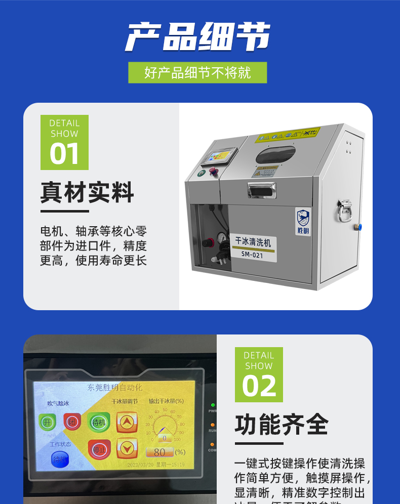 干冰粒在接觸時(shí)會升華(蒸發(fā)),清洗過程中沒有產(chǎn)生化學(xué)物質(zhì)、無毒、非磨料、非易燃、非導(dǎo)電;消除化學(xué)清潔的成本和危害,避免昂貴的環(huán)境清潔要求。